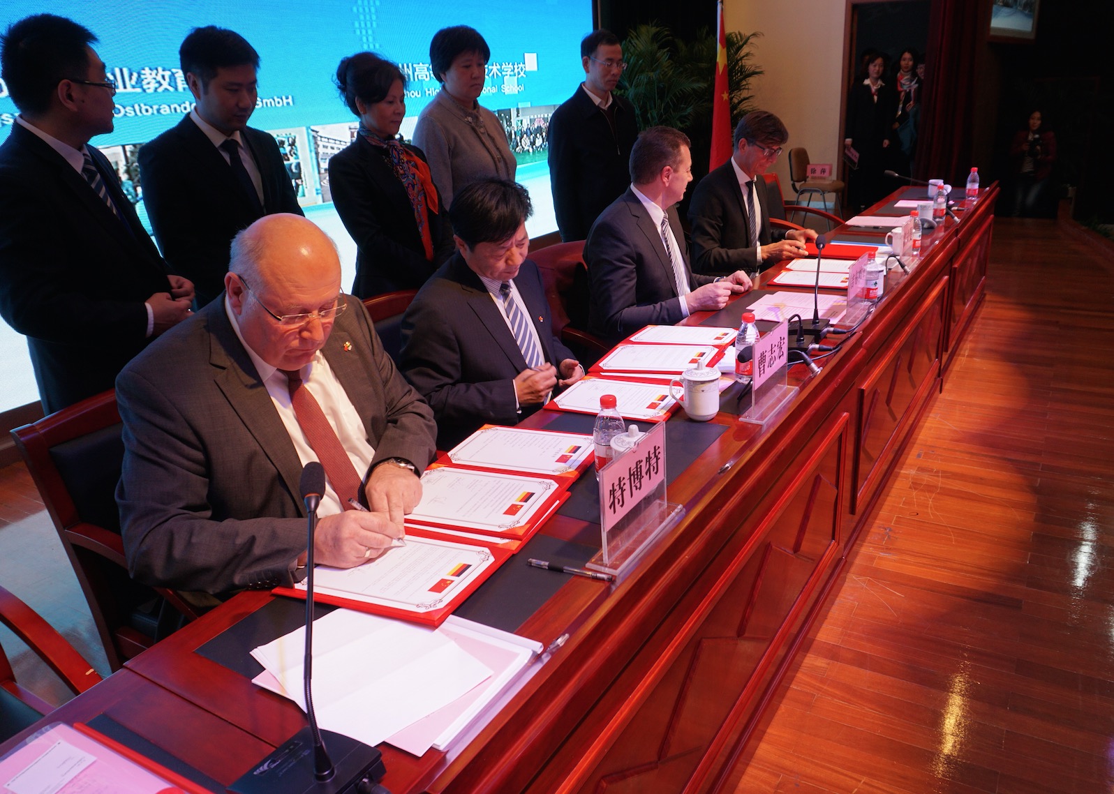 30日下午,代表團來到bbw在蘇州的一所合作院校——蘇州高等職業(yè)技術學校,bbw蘇州高層和學校領導一起考察并認可了中德職業(yè)技術培訓中心的實訓設施和德國雙元制職業(yè)教育模式在蘇高職的本土化實踐。